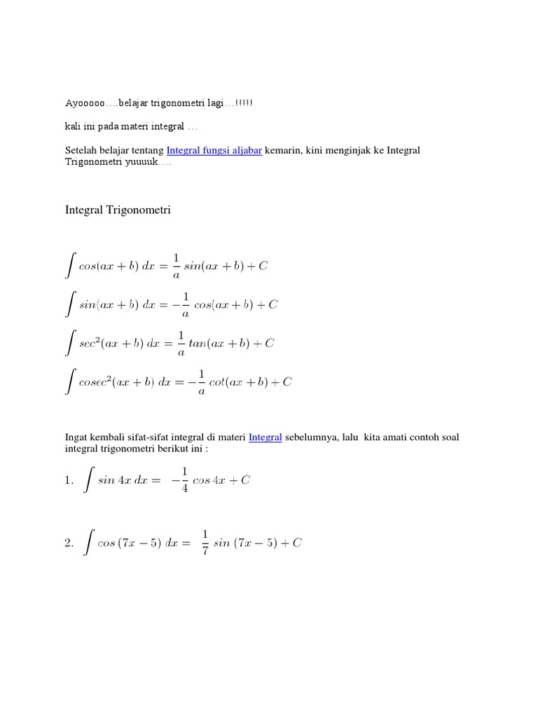 Integral Trigonometri Rumus Integral Cos Soal Pembahasan from www.dosenpendidikan.co.id Maybe you would like to learn more about one of these? We did not find results for: Check spelling or type a new query.